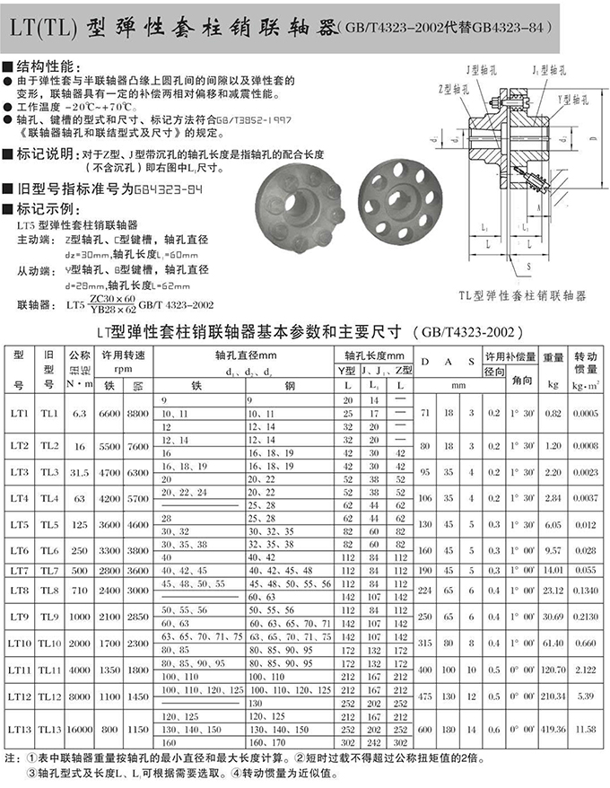 瑞安市寶德隆機械配件有限公司提供LT(TL)型彈性套柱銷聯軸器具有拆裝方便,快速安裝等特點,廣泛用于連接/固定輪轂孔和零件的軸,例如齒輪,錐齒輪,鏈輪,葉輪,凸輪,皮帶輪和飛輪等軸的聯結固定,咨詢電話:18906872378