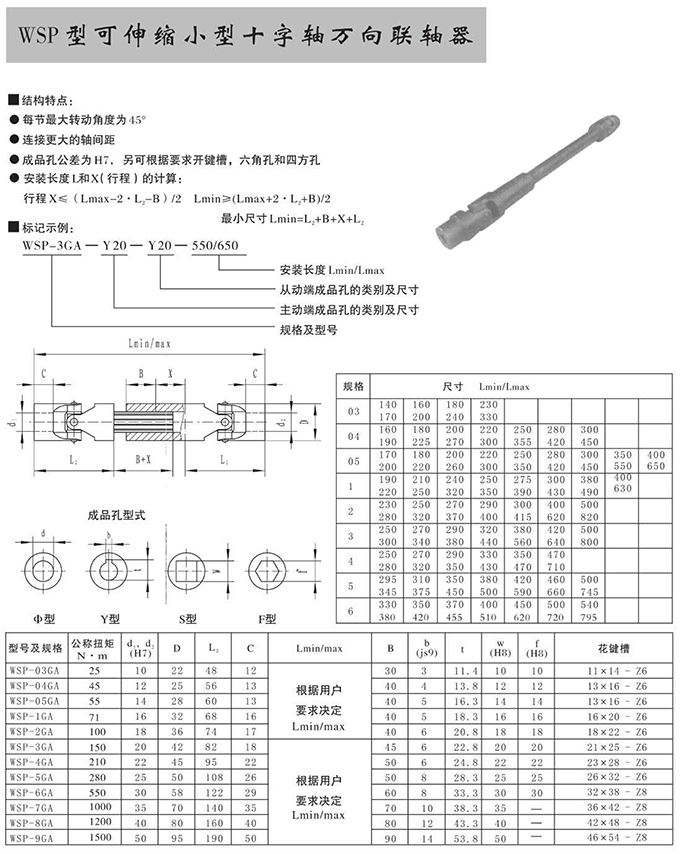 瑞安市寶德隆機(jī)械配件有限公司提供WSP型可伸縮小型十字軸萬(wàn)向聯(lián)軸器具有拆裝方便,快速安裝等特點(diǎn),廣泛用于連接/固定輪轂孔和零件的軸,例如齒輪,錐齒輪,鏈輪,葉輪,凸輪,皮帶輪和飛輪等軸的聯(lián)結(jié)固定,咨詢電話:18906872378